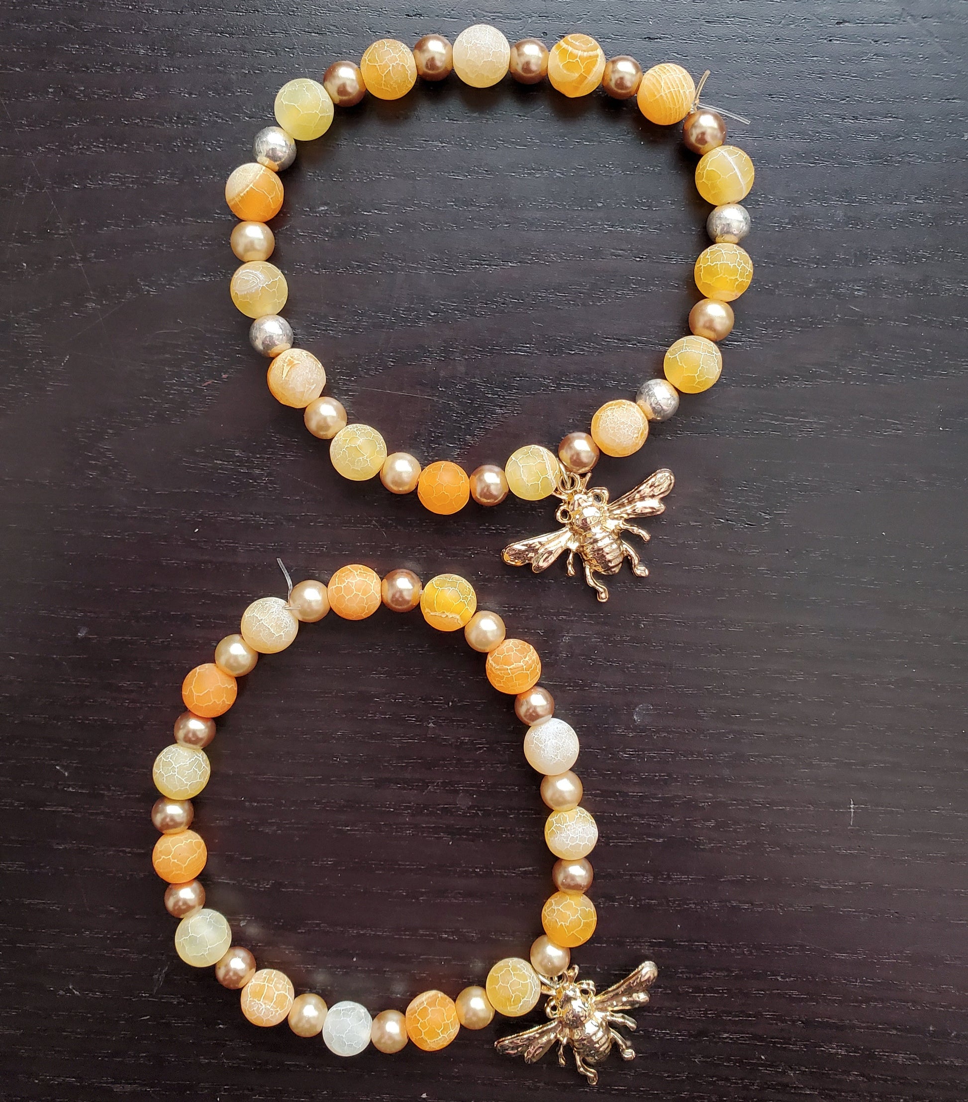 Each of these bracelets is hand-made and one-of-a-kind! They're threaded on a durable elastic string for ease of wear and adjustability.