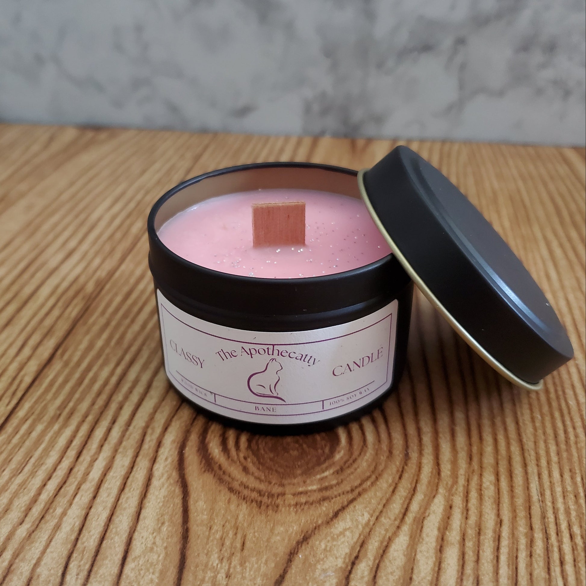 These 4oz. candles are made of 100% soy wax, with a wooden wick and a wide array of fragrances to choose from, all inspired by your favorite DnD classes, spells, and feats!